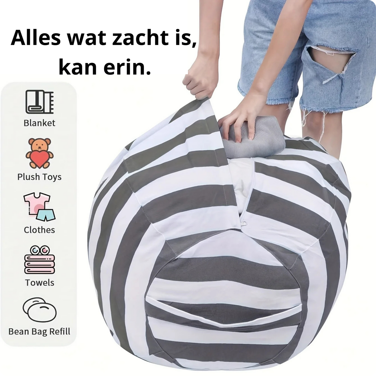 Verander rondslingerende knuffels, dekens en kleding in een comfortabele zitzak